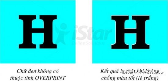 - Màu trong chế độ overprint: trong hầu hết các trường hợp, văn bản, đường kẻ và nền màu đen đều được in chồng (overprint) lên màu nền. Tuy nhiên có một số trường hợp tính chất này không có (thường xảy ra ở các phần mềm đồ họa), do đó bạn nên kiểm tra tính chất này trước khi xuất file, nếu không bạn sẽ bị lé trắng trông như hình dưới đây: