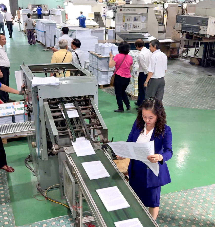 Đối với việc nhận nhiệm vụ in và phát hành Dự thảo các Văn kiện trình Đại hội XIV của Đảng lần này, đơn vị Công ty luôn đảm bảo một quy trình bảo mật, chặt chẽ, chuyên nghiệp và chất lượng cao. Xác định đây là một nhiệm vụ quan trọng, đặc biệt trong bối cảnh chuẩn bị cho các sự kiện lớn mang tính chiến lược để phục vụ Đại hội XIV của Đảng. Ban Lãnh đạo đã phát động thi đua, huy động toàn thể CB-CNLĐ nêu cao tinh thần trách nhiệm, phối hợp giữa các phòng, ban, phân xưởng khẩn trương triển khai hoàn thành việc in và phát hành Dự thảo văn kiện trình Đại hội XIV đúng tiến độ và thời gian nhanh nhất.