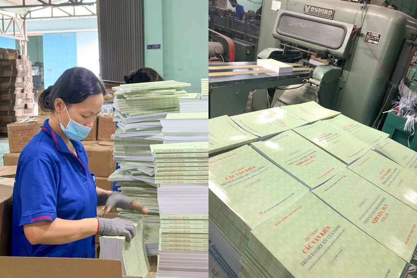 Một số hình ảnh sản xuất và phát hành Dự thảo các Văn kiện trình Đại hội XIV của Đảng tại Công ty In Nhân Dân Bình Định: