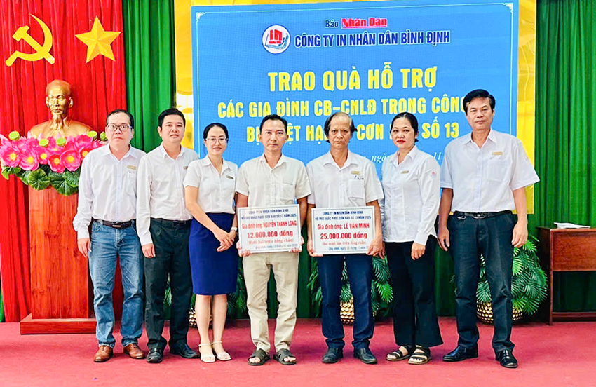 Với tinh thần “tương thân tương ái, lá lành đùm lá rách”, ngày 12/11/2025, Ban Lãnh đạo cùng Ban Chấp hành Công đoàn Công ty In Nhân Dân Bình Định đã tổ chức thăm hỏi, động viên và trao các phần quà hỗ trợ thiết thực cho những gia đình CB-CNLĐ bị ảnh hưởng bởi bão.