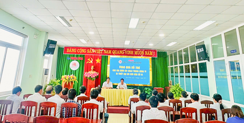 Tại buổi trao quà, đại diện lãnh đạo công ty gửi lời thăm hỏi, chia sẻ sâu sắc đến các gia đình gặp khó khăn, đồng thời động viên mọi người sớm khắc phục hậu quả thiên tai, ổn định cuộc sống và yên tâm công tác.