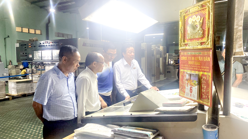 Dẫn đầu đoàn công tác đ/c Đinh Xuân Ba – Vụ trưởng, Chánh Văn phòng Đảng ủy và các đoàn thể Báo Nhân Dân. Chủ tịch, giám đốc và cán bộ chủ chốt của các công ty in: Công ty In Báo Nhân Dân Hà Nội, Công ty In Báo Nhân Dân Đà Nẵng, Công ty In Báo Nhân Dân TP. Hồ Chí Minh đã đến thăm Trụ sở Công ty và Xưởng sản xuất tại CCN Nhơn Bình.