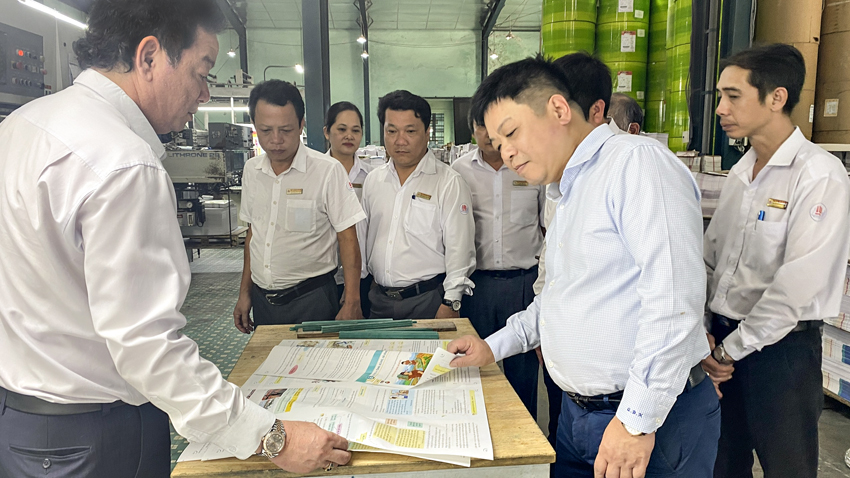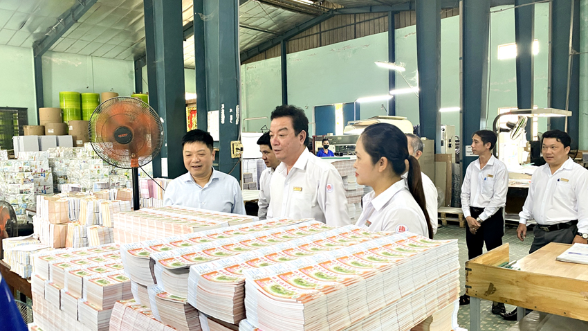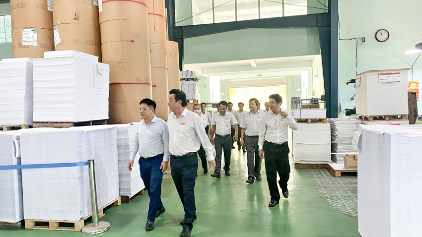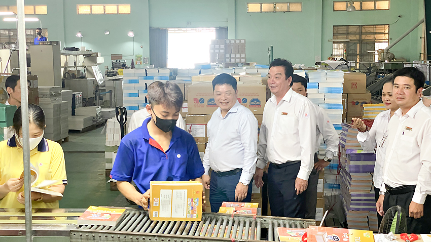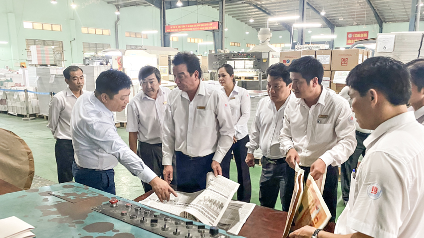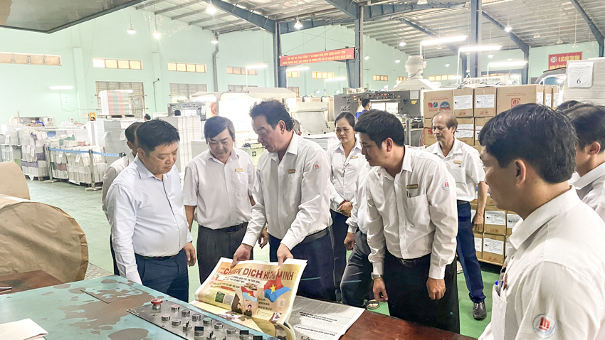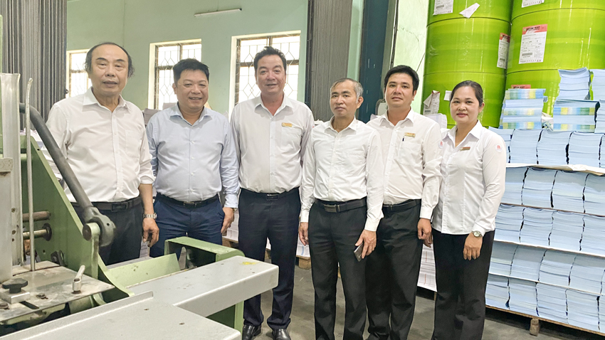 Những hình ảnh của đồng chí Quế Đình Nguyên thăm xưởng sản xuất của Công ty In Nhân Dân Bình Định: